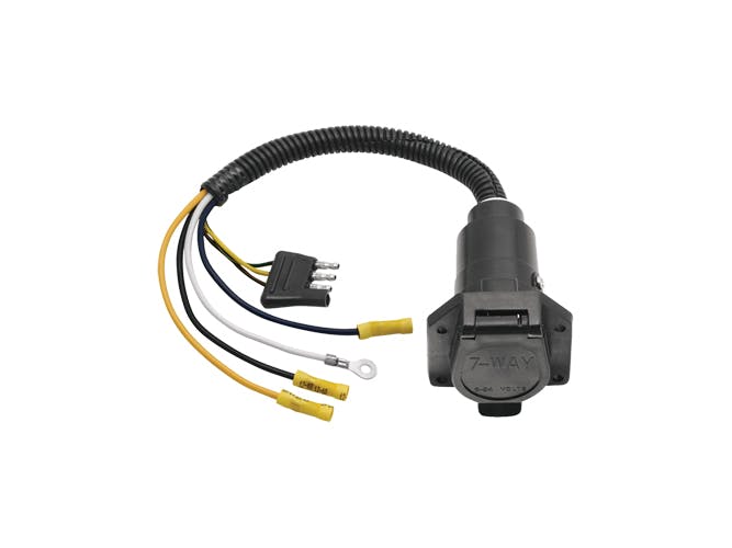 The plug is the wiring cable that is part of the trailer. There are lots of different sizes and types of plugs out there. When looking at hooking up a trailer, it is important to know what type of plug it uses beforehand. Otherwise, the vehicle’s lights may not work. Many people who tow lots of different trailers carry multiple adapters with them.